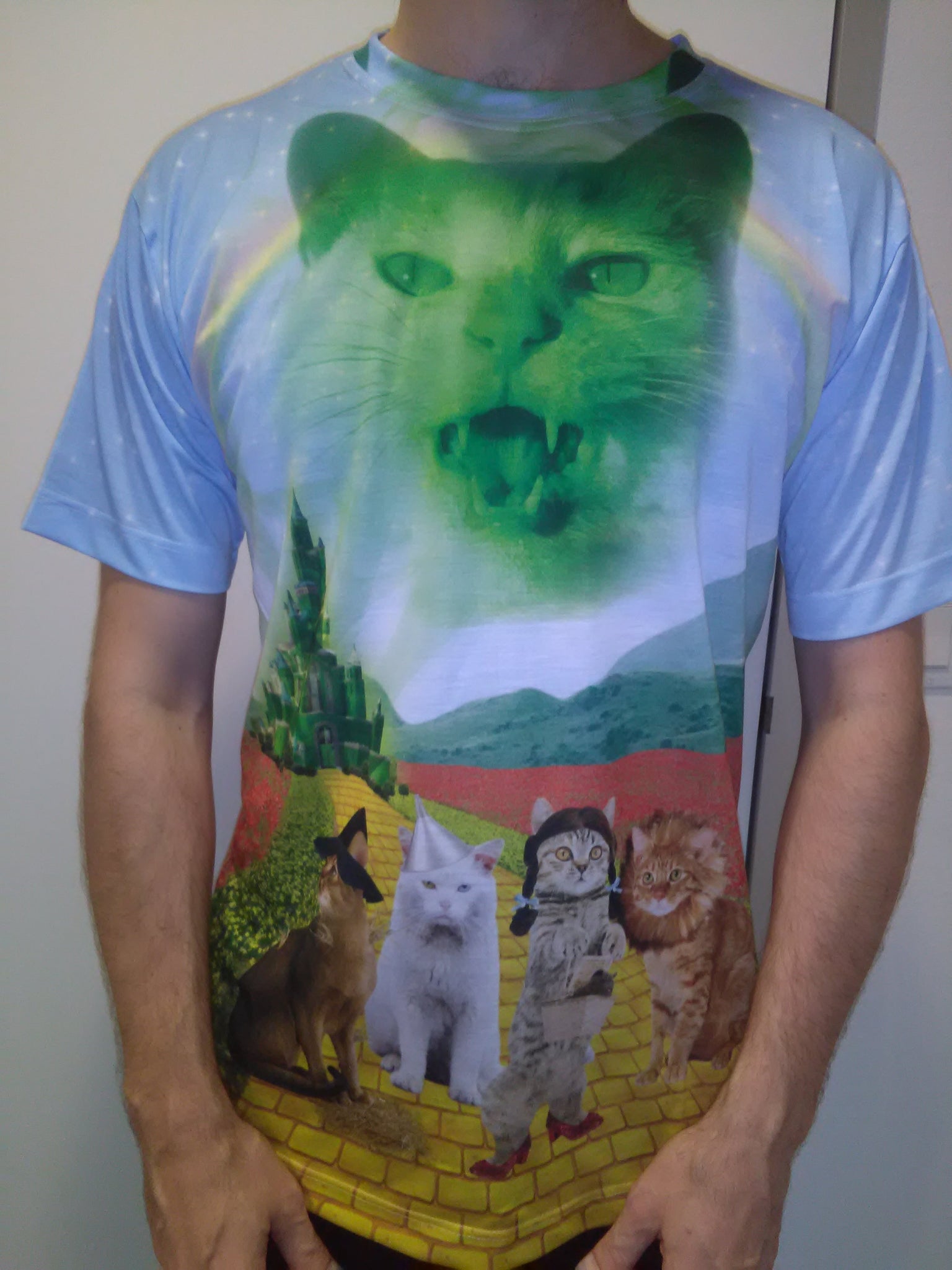 We're off to see the wizard! The wonderful Wizard of Paws! We hear he is the kittiest wiz of ever a wiz there was! Ever wonder what it'd look like if Dorothy and her friends were cats? This all-over print shirt makes that imagination a reality! Get this cute, vibrant shirt today, you don't even have to follow the yellow brick road!